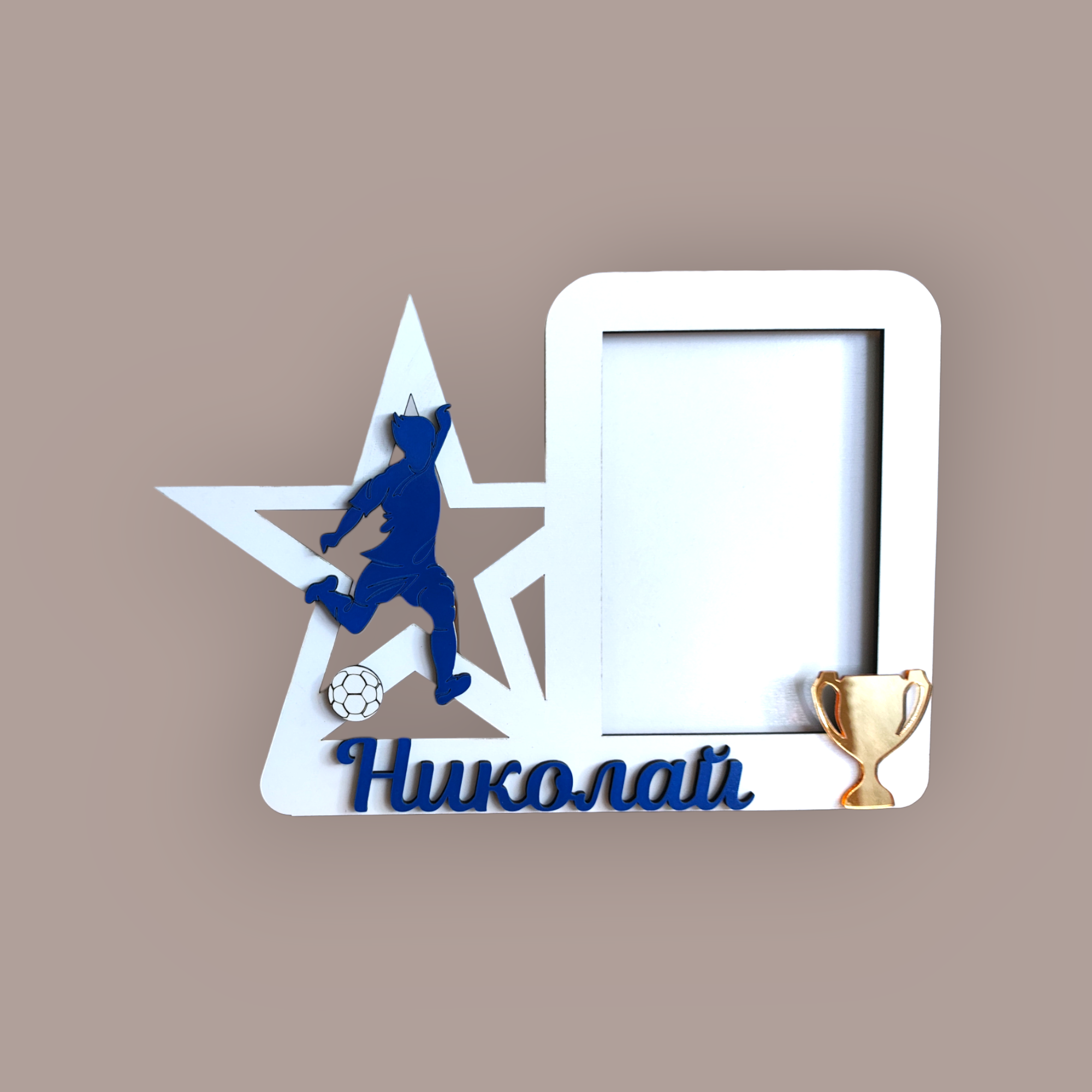 Търсите уникален и стилен подарък за футболен фен? Нашата персонализирана дървена рамка за снимка на тема футбол е идеалното решение! Рамката предлага възможност за добавяне на име, което я прави перфектен подарък за всякакъв повод – рожден ден, юбилей или победа в мач. С елегантен дизайн и внимателно подбрани футболни елементи, тя ще внесе спортен дух във всяко помещение. Изберете персонализирана рамка за снимка и запазете незабравимите моменти завинаги. Поръчайте сега и се възползвайте от бърза и надеждна доставка!